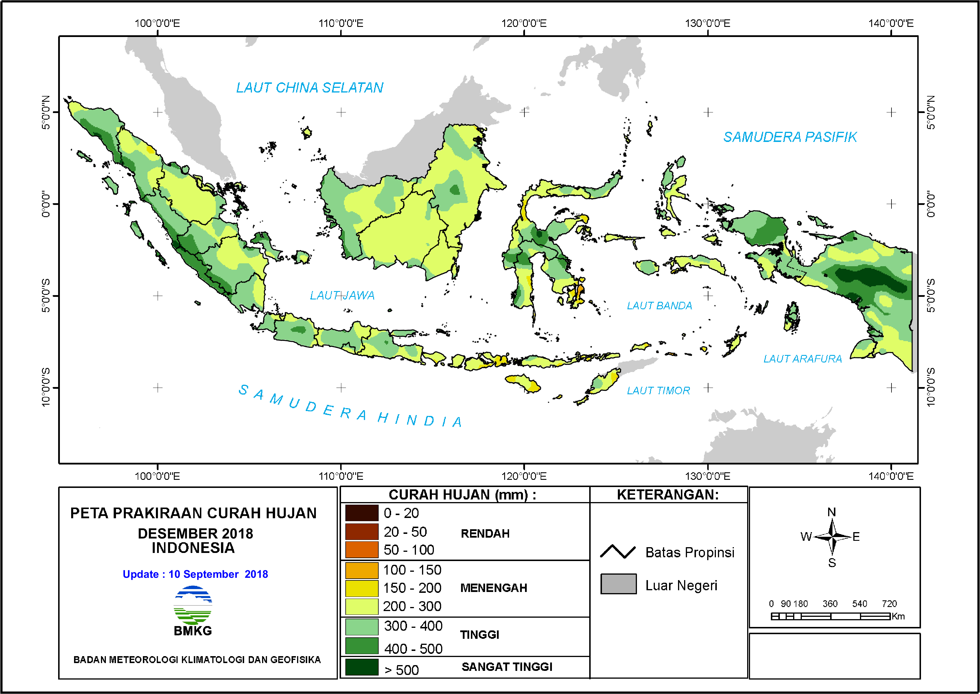 Curah hujan pada bulan Desember 2018 diperkirakan semakin membaik dengan tingkat curah hujan diprediksi pada level menengah hingga tinggi di seluruh Indonesia.