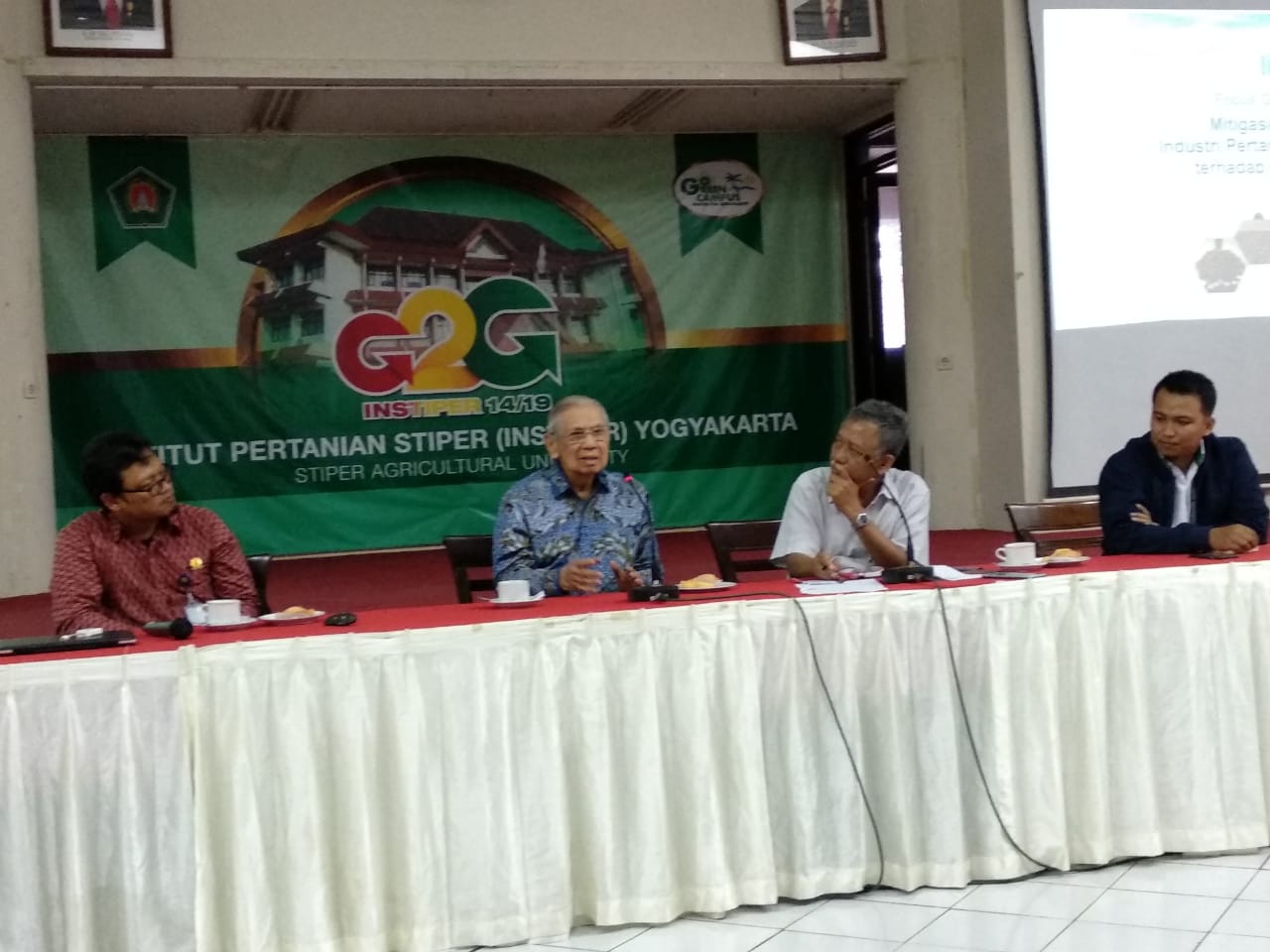 Acara FGD dengan tema “Mitigasi & Adaptasi Sektor Pertanian dalam Menghadapi Perubahan Iklim” merupakan acara yang diinisiasi oleh INSTIPER Yogyakarta sebagai respon dan upaya dalam mempersiapkan sektor pertanian (khususnya perkebunan) dalam menghadapi perubahan iklim. Acara ini dilaksanakan pada 22 Oktober 2018 di Kampus Instiper Yogyakarta. Narasumber yang dihadirkan dalam acara ini adalah Bapak Soedjai Kartasasmita, Dr. Siswanto (BMKG), dan Dr. Suroso Rahutomo serta Iput Pradiko (PPKS). Acara ini diikuti oleh sekitar 40 orang yang terdiri dari 30 orang dosen INSTIPER dan Dinas Lingkungan Hidup dan Kehutanan dari beberapa Kebupaten/Kota.