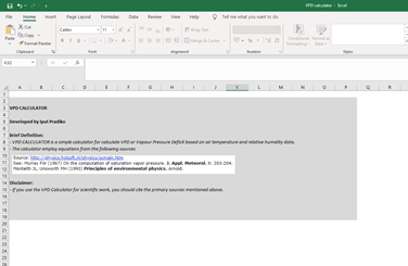 VPD CALCULATOR adalah kalkulator yang digunakan untuk menghitung nilai vapour pressure deficit berdasarkan data suhu udara (C) dan kelembaban udara relatif (%). VPD CALCULATOR ini diharapkan dapat mempermudah para pengguna untuk menghitung nilai VPD jika yang dimiliki hanya data suhu udara dan kelembaban udara saja.