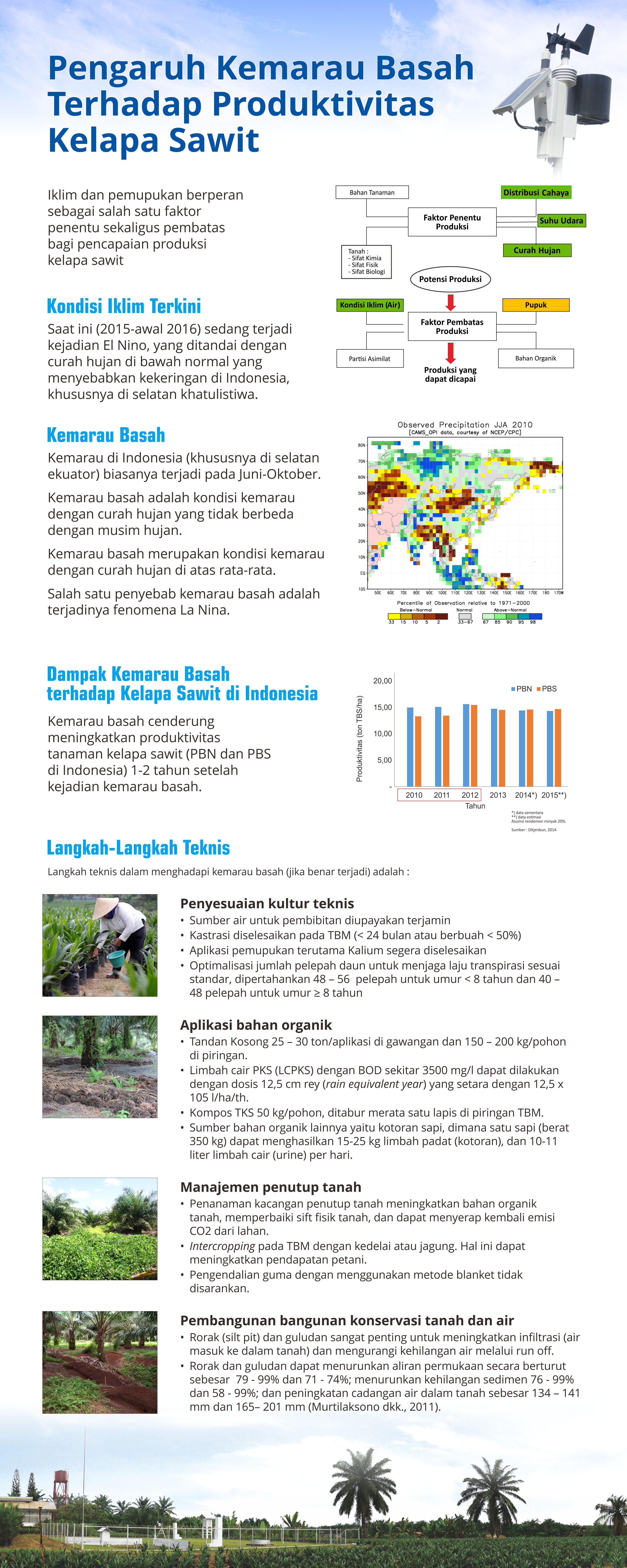 - Pradiko I., Nuzul H. Darlan, Hasril H. Siregar. 2016. Kajian anomali iklim terhadap penurunan produksi kelapa sawit di Sumatera Utara. Warta PPKS, 2016, 21(1). ISSN 0853-2141 download.